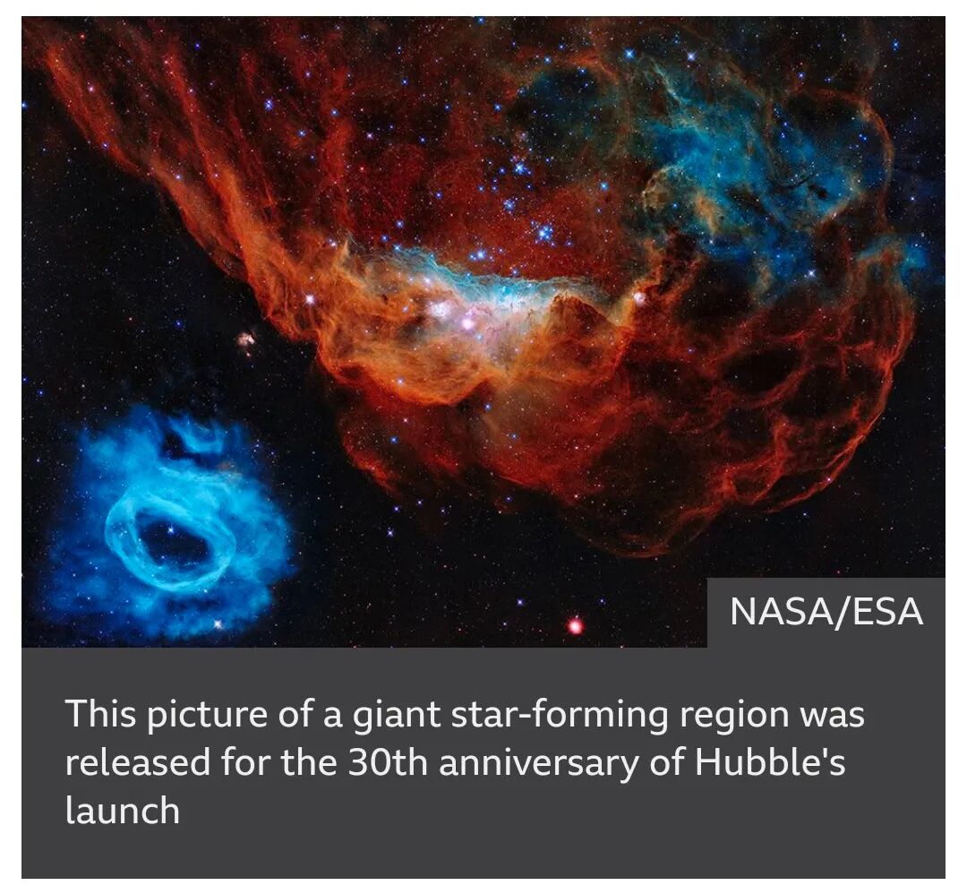 这张巨大恒星形成的照片是为纪念哈勃发射30 周年而发布的