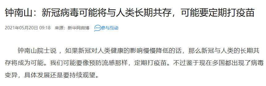 其实这种观点并不新鲜,之前钟南山院士也多次提到类似的观点: