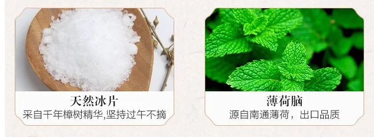 有些就更直白了,在宣传上直接写出了薄荷脑和冰片。