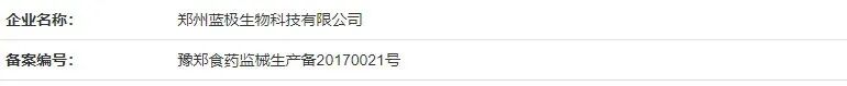 我们再仔细看一下包装,还发现了一个“豫郑食药监械生产备”的字号,也就是说这是一个郑州批准生产的医药器械。而去数据库查询了一下这个字号,是郑州一家生物科技企业的生产备案。