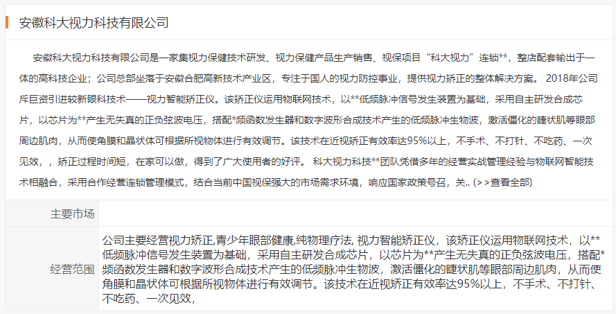 这个同样宣传可以保护视力,缓解疲劳和干涩,提神醒脑的产品,虽然出品方是一家标着“科大”的名字的安徽公司。但随便看一下公司简介的奇幻文风,就可以用一只四两大闸蟹赌这个公司和我科没什么关系。