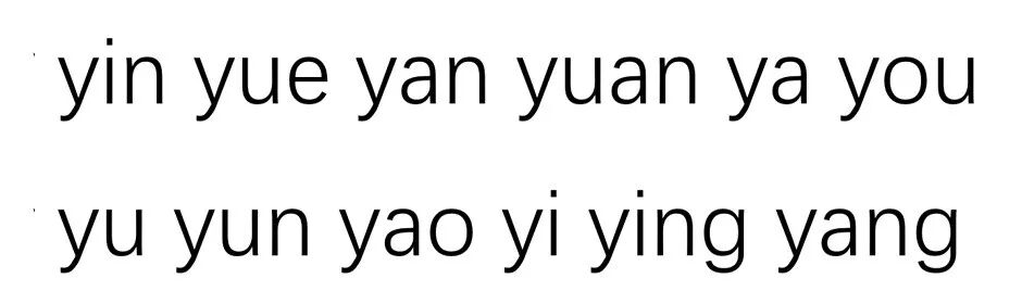 比如前面家长留言中提到的 ye yue yuan yin yun ying,就都是很典型的变动案例,更麻烦的是,这6个看着很像的拼音,其实包含了三种不同的变形方式:
