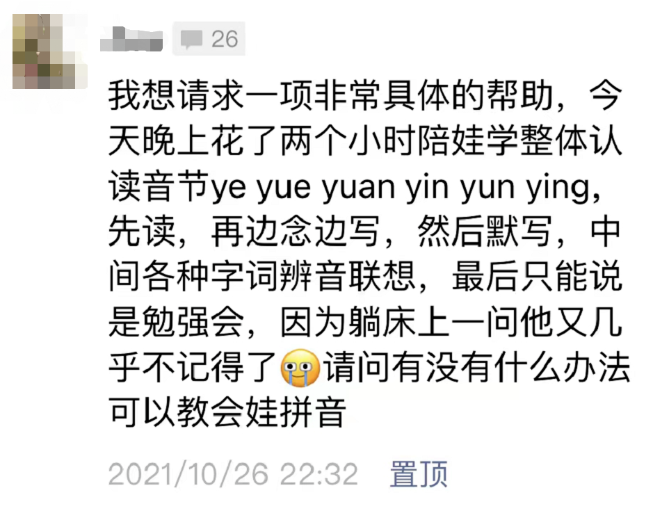 在从幼儿园到小学的语文学习中,拼音往往是家长和老师都纠结的难点。前天我们收到了一位读者的留言,就是关于在教小朋友拼音的时候遇到的问题: