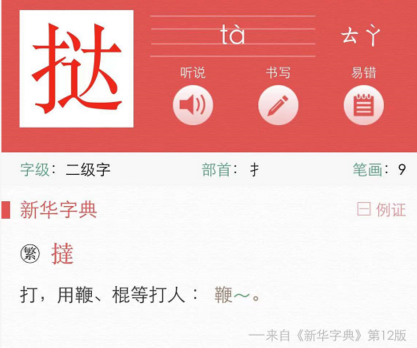 再举个例子:周末的时候,被家里小朋友提了一个问题:“那个圆圆的像碟子一样,中间有鸡蛋奶油的甜品叫什么?”,我说叫【dàn tǎ】,结果被驳斥了,说正确答案是【dàn tà】。我查了一下字典,还真是,蛋挞的“挞”只有一个四声,也就是鞭挞的音。