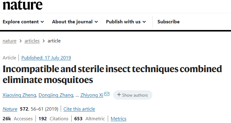 中山大学就将两种技术结合起来,先让蚊子都感染了微生物,然后再对它们进行辐照,辐射强度恰好只让雌蚊子失去生育能力,而雄蚊子无碍。这样就解决了之前的难题。因此发表在了《自然》杂志上。