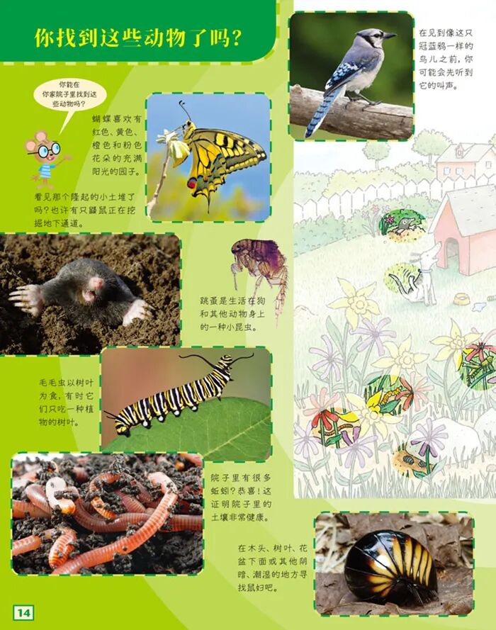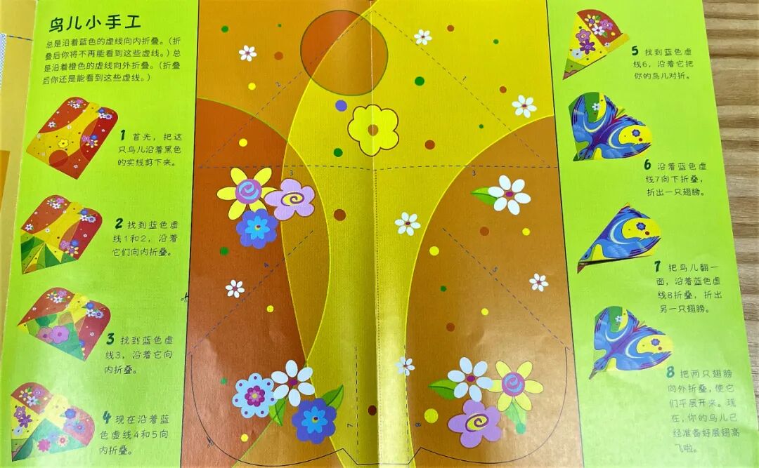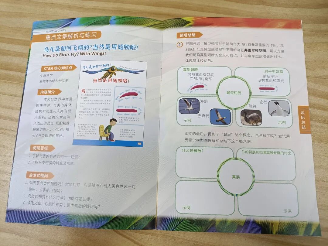 按照传统,蟋蟀童书都很注重读者互动,《点击世界》中文版也不例外。《点击世界》杂志每期围绕一个主题,用漫画、故事、游戏等方式讲解一个科学现象或知识讲解得透彻清晰。火车、猫咪、比赛、岛屿……每一个专题都能轻而易举地抓住孩子们的心。杂志会从不同角度和维度,抽丝剥茧地将一个专题讲得生动立体,惟妙惟肖。同时,《点击世界》杂志的编辑很注重内容图形化,采用大幅照片、插画,文字简洁、生动活泼,通过直观的图像语言,把复杂的事物讲得深入浅出、便于理解。如:2022 年 5/6 月刊,这期的主题是“美丽的鸟儿”,封二设计了一个连线小游戏来引入主题。紧接着是一篇跟鸟儿有关的漫画,用活泼的语句和轻松的画风吸引小朋友的阅读欲。