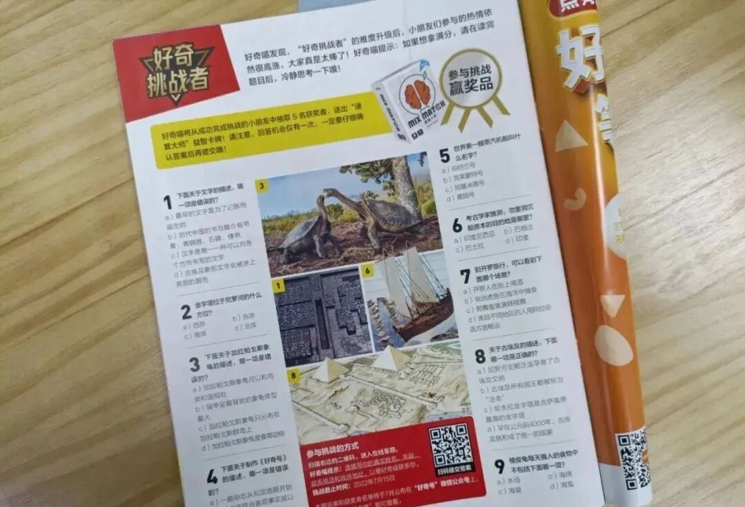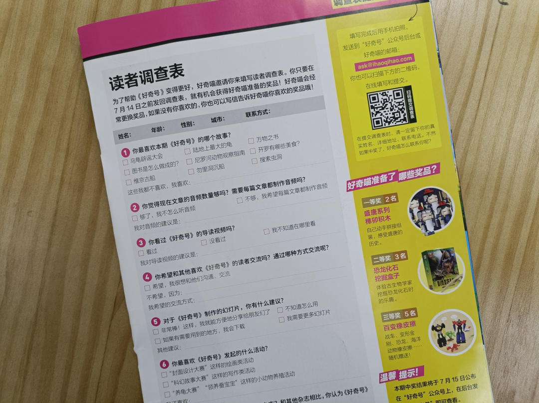 几年前就在公司里看到过同事给孩子订阅的《好奇号》,当时刚上小学的小朋友一下选择同时订了好几种儿童杂志,包含《好奇号》在内。但几年后,到了今年,其他杂志都停了,只有铁打不变的《好奇号》一直是小朋友的最爱。据他自己说,每个月收到杂志后,一定会读三遍:第一遍先选自己最感兴趣的主题来读;第二遍从头到尾通读;第三遍再把之前没看透,想回味的地方,仔仔细细地再看一遍,犄角旮旯都不放过。而当期杂志实在都看完好几遍了,就会翻出之前的过刊来读,可谓是铁杆粉丝。