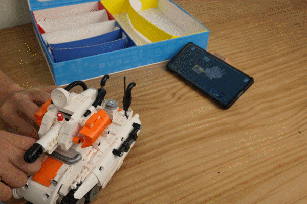 从德国回来之后,我们马上海淘了一套获奖玩具回来研究。我们发现这款获奖玩具与传统的乐高编程机器人相比,最大的不同在于,孩子们不需要像程序员一样编辑代码,也不需要使用电脑来进行操作,也无需使用数据线进行设备连接,只要使用平板电脑或手机上的应用程序APP,即可用模块化的图形编程方式控制机器人的动作。