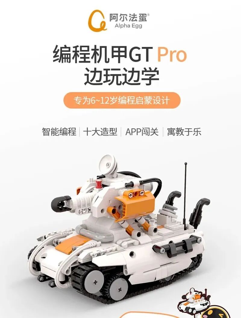 最终找到的,居然是“自家人”,也就是今天我们推荐的这款,来自于科大讯飞旗下的阿尔法蛋编程机甲GT Pro,专为6岁以上的学龄儿童编程启蒙设计的积木。