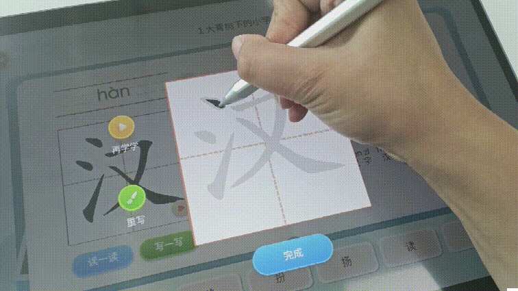 而尖头笔尖的学习机,则根据下笔的力度模拟孩子平时写字的情况,有助于孩子进行练字。而平板型的学习机对于写字来说十分友好,只要将学习机从支架上拿下来,放在桌面上,就可以像在书本纸张上一样写字了。