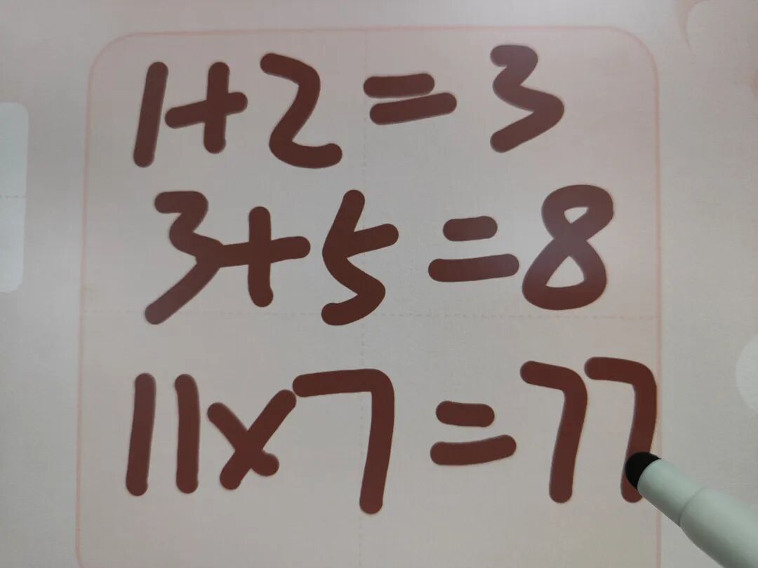 比如使用海绵圆头笔尖的学习机,在书写中,学习机只能感应到粗略的接触,“,但没办法精细化的识别用笔的力度,因此如果做题目,就是这样的: