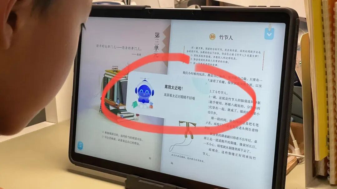 针对孩子学习中的错误习惯,两个品牌的学习机也都提供了距离提醒以及抖动提醒的功能,保护孩子的视力。孩子离屏幕太近,马上就会进行提醒,坐姿也会得到纠正。