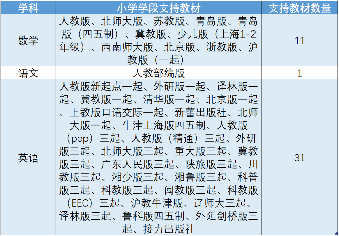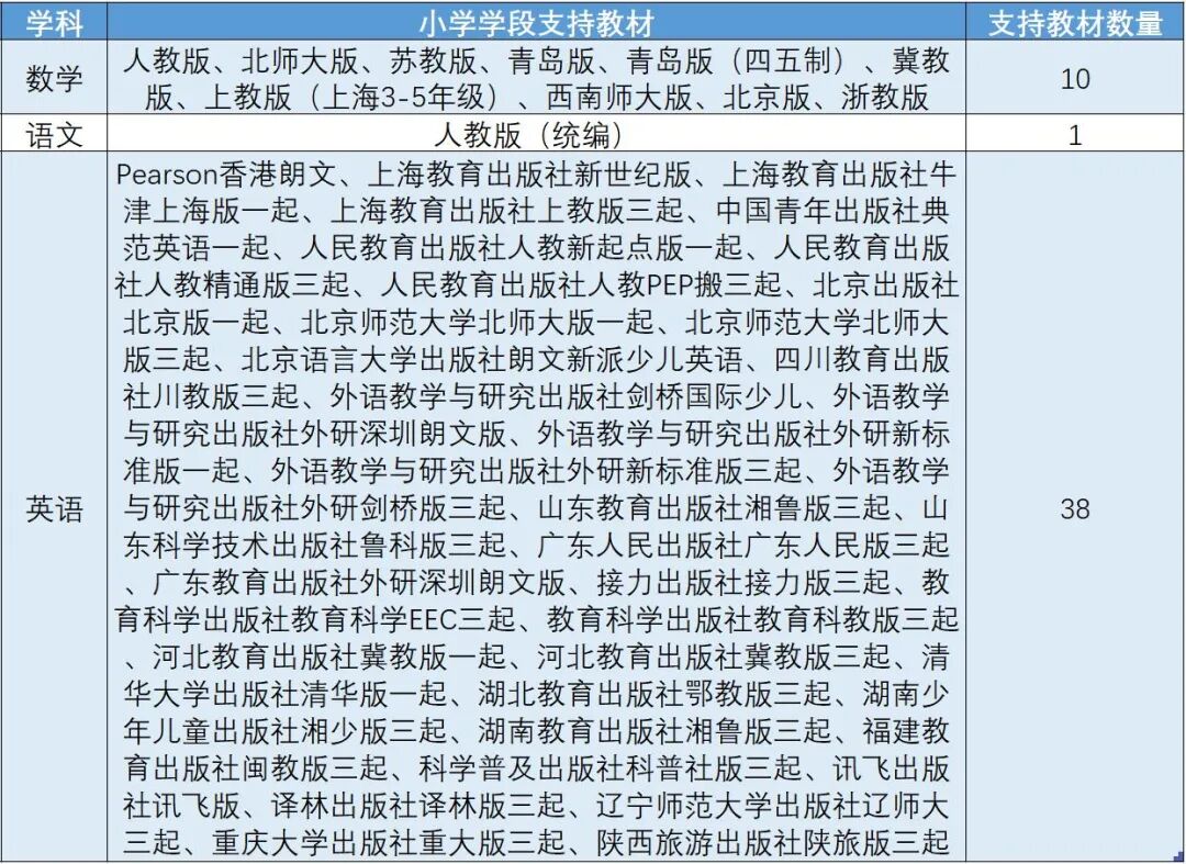 丰富的全学科教学内容,满足不同地区教材需求