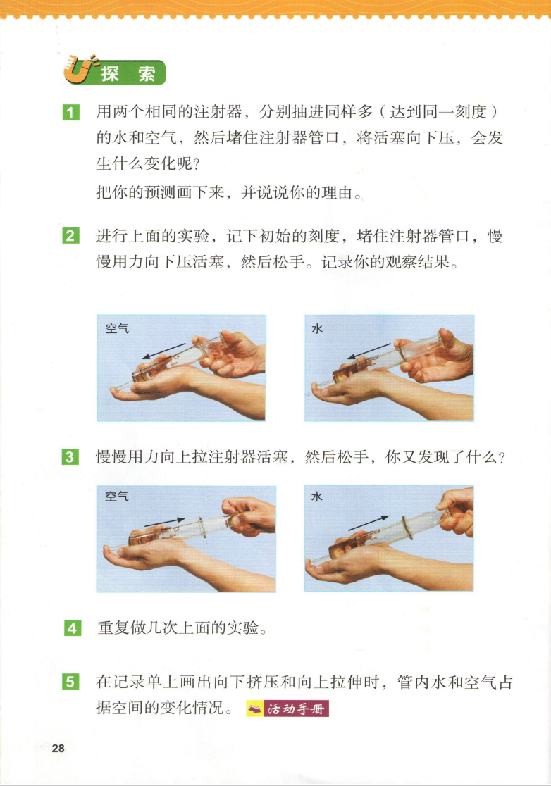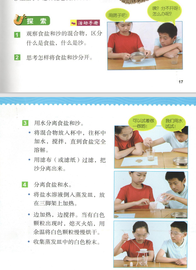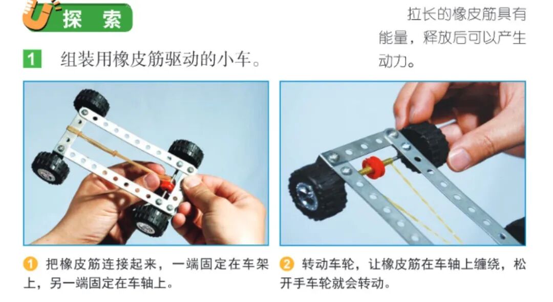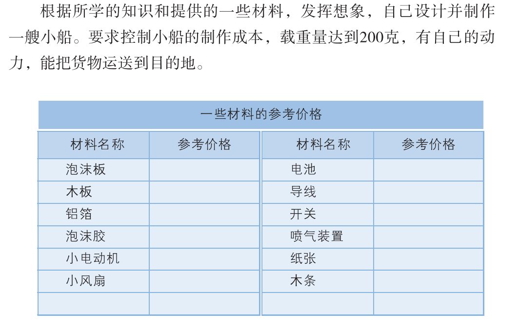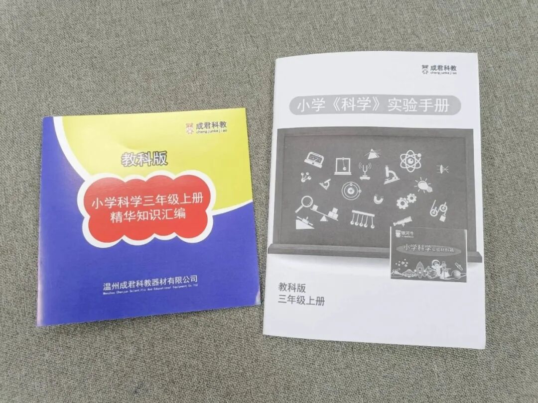 除了材料之外,每个学期的箱子里面还包含一册《精华知识汇编》和一册《科学实验手册》。《精华知识汇编》是科教版教材里面每一个课时的重点总结,孩子可以随时拿出来背诵阅读,特别把重点总结中的重点词汇等内容用括号括起来方便孩子记忆。根据手册中的“实验材料”从实验材料箱中拿取材料包和公用材料,以及其他自备材料。根据“探究过程”的文字提示,或是扫描“探究过程”右侧的二维码观看实验视频来做当前课程的实验。实验完成后,把实验结果和发现填写在“我的记录和发现”中。这套盒子把课后实验和巩固练习完美结合了起来,实验材料包里的实验紧紧跟随课本每一课之后的探索实验。以三年级上册,空气单元中的《压缩空气》中,关于压缩空气的实验为例:书中压缩空气的实验用到了两个针筒和水,用水和空气做对比,观测积压水和空气之后,各自占据空间的变化情况。三年级上册的材料箱中,压缩实验的材料袋含有两支针筒和两个橡胶塞,水需要自己准备。我们举不同年级的几个系列科学课程作为案例,来给大家展示一下这套科学盒子吧。→ 三年级上册中,单元水中《混合与分离》这一课中,把盐、沙子混合物中的食盐和沙子分离的实验,书中的探索实验的流程是这样的。科学实验材料箱中不但配备了探索中所需要的杯子、食盐、沙子、金属勺(代替蒸发皿)、蜡烛(代替酒精灯)、漏斗和滤纸,还有课后探索需要的木屑、铁屑和筛子。同样,可以根据课本中的探索做实验,也可以跟实验手册二维码中的实验视频一起做实验。实验视频中也有关于实验的特征比较记录表。→ 科教版小学教材四年级上册《运动和力》这一单元中,用小车贯穿整个单元。这一单元的实验孩子们比较感兴趣,但是家长不太容易能凑齐材料。第一课《让小车运动起来》,教材中所用到的材料为垫圈、小车和绳子。材料盒中准备的材料有小车、垫圈、绳子和用来放置垫圈的别针。别针的作用是做一个钩子,方便加减垫圈的数量,研究垫圈数量和小车运动的关系。第二课《用气球驱动小车》,用到的材料是气球、小车、喷嘴,气球释放出气体产生动力,推动小车前进。材料箱中用到的材料有气球、小车、反冲喷嘴和打气筒。材料箱中配备的喷嘴还可以调解嘴口大小,方便研究气球嘴口大小和小车动力的关系。第三课《用橡皮筋推动小车》中,课本上用到的材料是小车和橡皮筋,用橡皮筋链接车体和轮毂,做成一个回力小车。材料箱中的材料是小车和三个橡皮筋。根据课本内容不会安装的小朋友就可以扫描科学实验手册中的二维码观看安装视频学习安装方法。把皮筋一端穿系在车头金属圈中,另一端挂在后轮车轴的固定件上,旋转车轮使皮筋绕起来,释放车轮时,因皮筋的弹力可以车轮旋转起来。→ 科教版小学教材五年级下册《船的研究》这一单元中,就有很多关于船的实验。第一课《船的历史》做到的实验是研究独木舟,把一根木条做成独木舟的模型载物。材料箱中准备的材料有小木船、浅水盘、垫圈、细线和超轻黏土。细线和超轻黏土用于研究船在水中行驶时收到水的阻力大小。第二课时《用浮的材料做船》选用的“浮”的材料选用的是竹竿或木条。材料箱中的材料有木棒、橡皮筋和用于测试载重的螺母。第三课《用沉的材料做船》,课本中选用橡皮泥和铝箔做船。材料箱中的材料是一块黄泥和几张铝箔。铝箔和黄泥都是会下沉的材料,做成船后增加底部和水面的接触面积,就能浮在水面上。用铝箔做成的船稳稳地浮在水面上,用垫圈测试铝箔船的载重量很大。第四课时《增加船的载重量》,设计不同底面积的铝箔船,测试不同底面积船的载重量。下图是第五课时《给船装上动力》所需要的材料,和最终船要达到的条件。材料包中的材料足够给船装一个蒸汽动力系统和一个马达带动的电力系统。我们试着做了一个蒸汽小船,小船在蒸汽的带动下缓缓前行。另外,当涉及到声音、声波的知识时,配套的材料也是真实的儿童乐器和器材,而不是简单廉价的材料。多种多样的真实材料和模型,让科学实验更加生动有趣。银河牛:小学科学实验材料箱单个年级上册(单盒/学期)银河牛:小学科学实验材料箱单个年级上下册(两盒/年级)团购截止时间:8月29日(周一)23:59,或售罄 银河牛小学科学实验材料箱将于2022年8月30日起从温州发出,合作物流为中通快递。中国大陆地区均包邮。如需顺丰,只发陆运,运费需补18元/盒,联系客服补差价。如需要延迟发货,请在订单中留言或及时跟客服联系。在收货过程中如果遇到什么问题也请和客服及时沟通。我们将在团购开始前上架定时开始的商品页面,你可以通过以下方法进入:1,点击文末的“阅读原文”,进入店铺页面,并选择你想要的产品;http://shop13535269.koudaitong.com支持微信支付、银行卡支付和支付宝支付。在购买和付款过程中如果出现任何问题,也可以咨询我们的 客服 【公众号下方工具栏——店铺客服】,或拨打客服热线 400-072-6060 与我们的客服进行联系。在微信内是无法用支付宝支付的,需要用支付宝支付的用户,可以点击右上角用手机浏览器打开店铺页面完成购买流程,付款时选择支付宝付款。点击众号下方工具栏“团购服务”——“店铺积分”。用微信号直接购买没注册有赞账号的话,需要用您购买时的微信号并以购买时