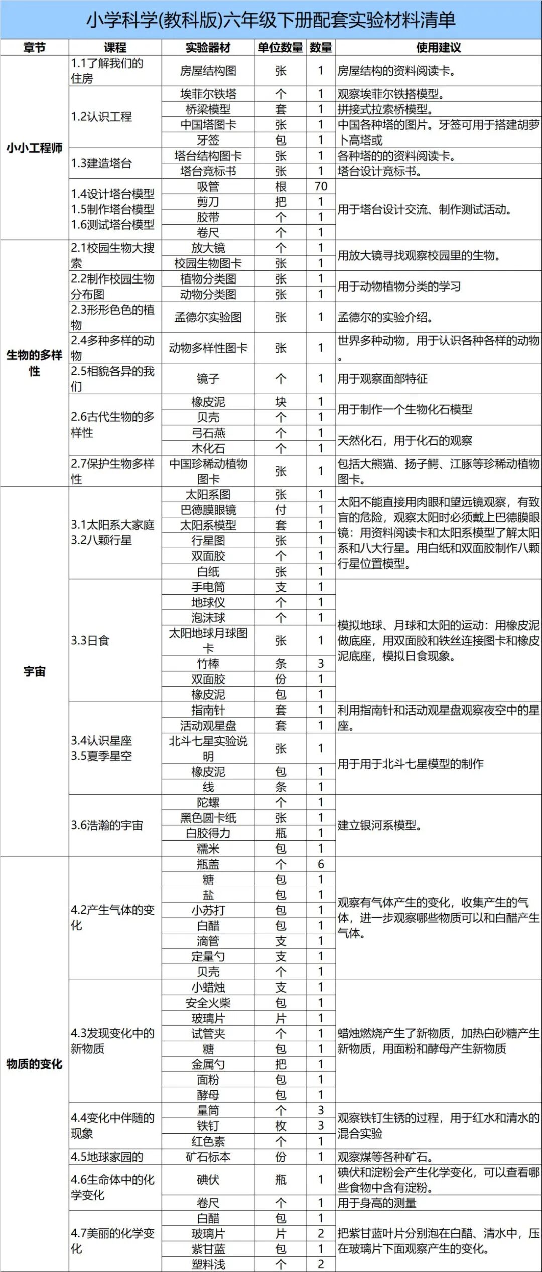每一学期的箱子里面,都包含与科教版教材同步的所有实验材料,并按课时分装,每一堂课只需要拿取相应课时的材料包即可(个别通用材料除外)。各年级配套实验材料箱展示,点击图片可查看大图