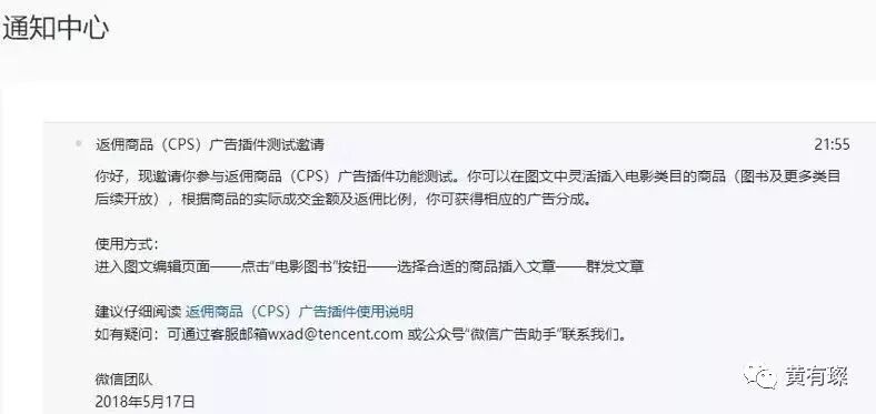 事实上,有些事情已经可以初见端倪,比如我们已经看到,微信公号已经开始上线了“返佣商品”的分销,可以在公众号中插入影视图书等CPS返佣商品广告及小程序广告。按照销售收入向公众号运营者分成。