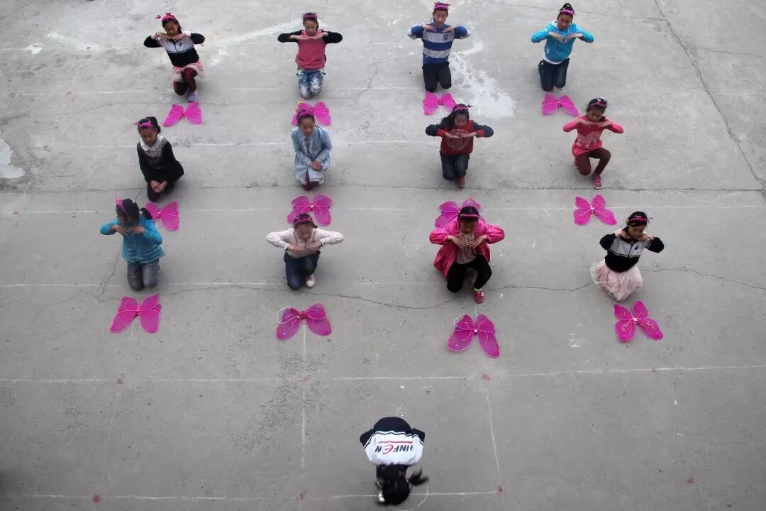 一次“六一”儿童节汇演,孩子们在表演“隐形的翅膀”。