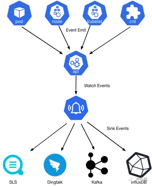 kube-eventer 是一个事件发射器,它将 kubernetes 事件发送到接收器(例如dingtalk,sls,kafka,微信等)。kubernetes 的核心设计概念是状态机。因此,Normal 当转移到所需状态时会有事件 Warning。