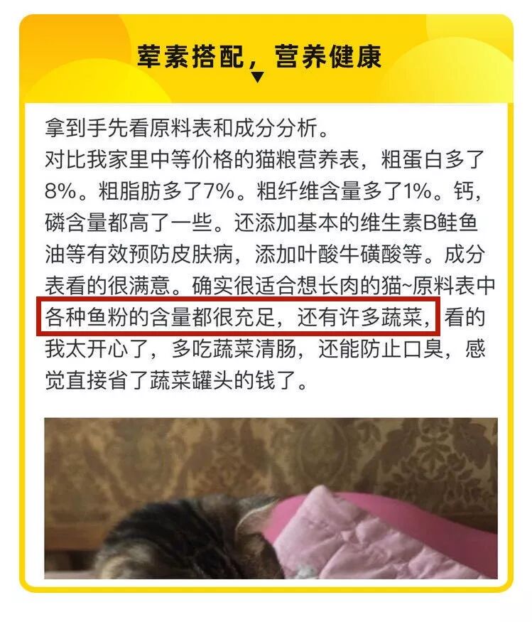 看了一下草本植物配方,荤素搭配,为猫咪提供均衡营养的同时又可以强化宠物的消化和吸收能力,让猫主子由内而外的健康,保持健康的体态。可以说是为肥宅猫的福音呀!