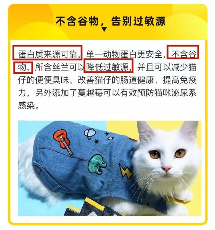 猫咪作为纯肉食性动物,对植物蛋白的消化利用率很低。有些猫咪会对猫粮里所含的谷物过敏,另外碳水化合物吃多了容易发胖。