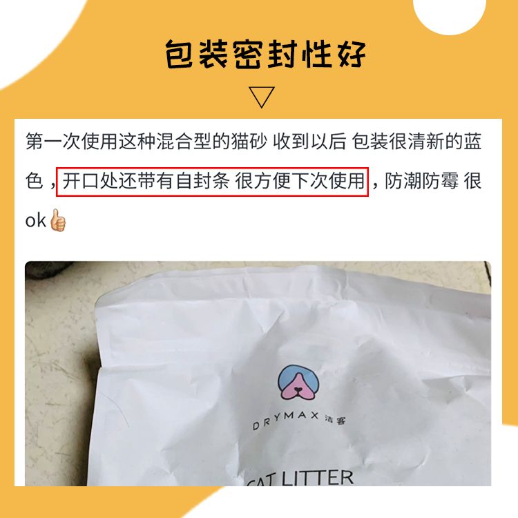 关于豆腐猫砂的密封性有多重要,上面已经说过了这里就不再提了,然而市面上的大部分豆腐猫砂都没有任何密封措施,来看看这款洁客猫砂有没有做到?