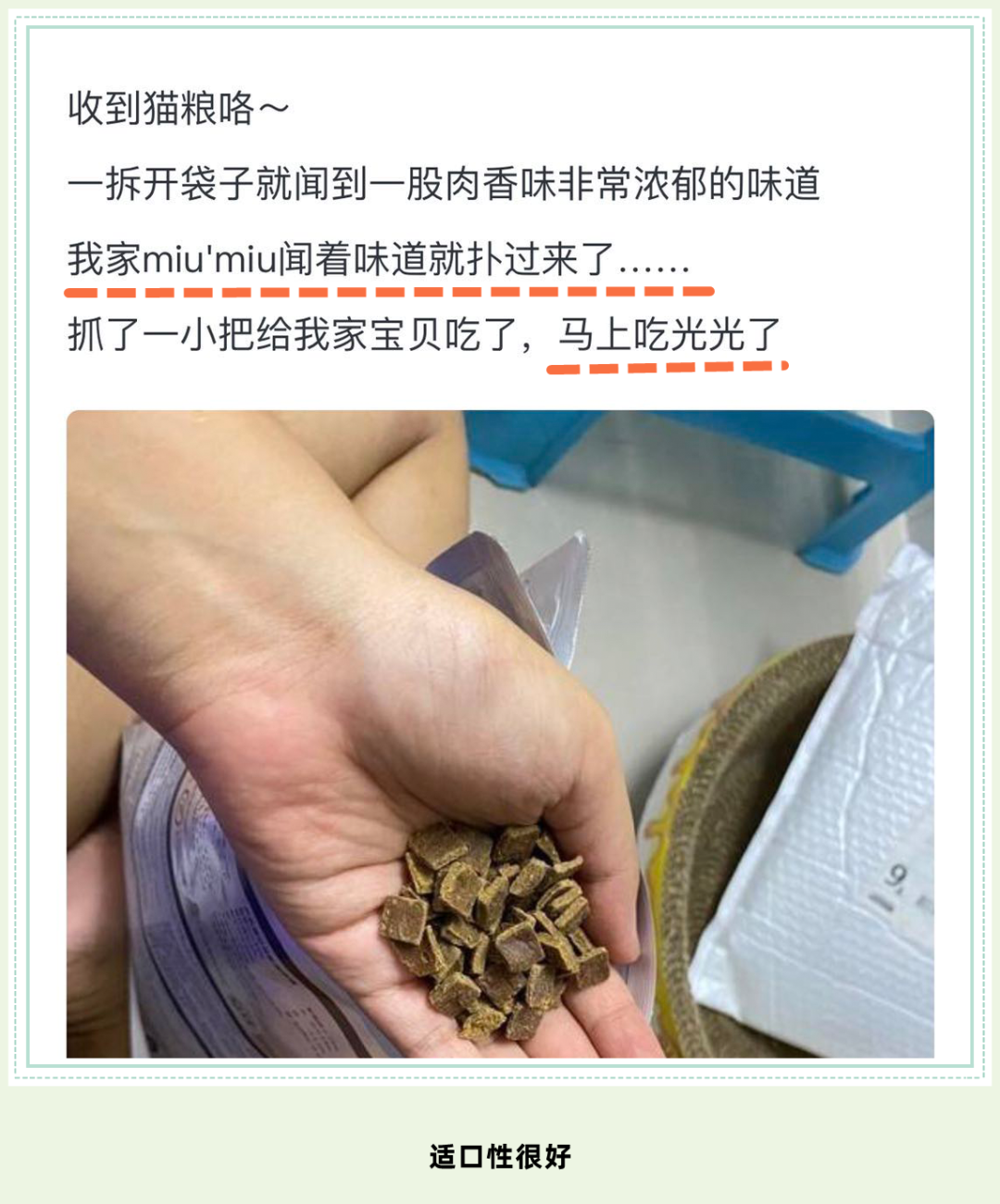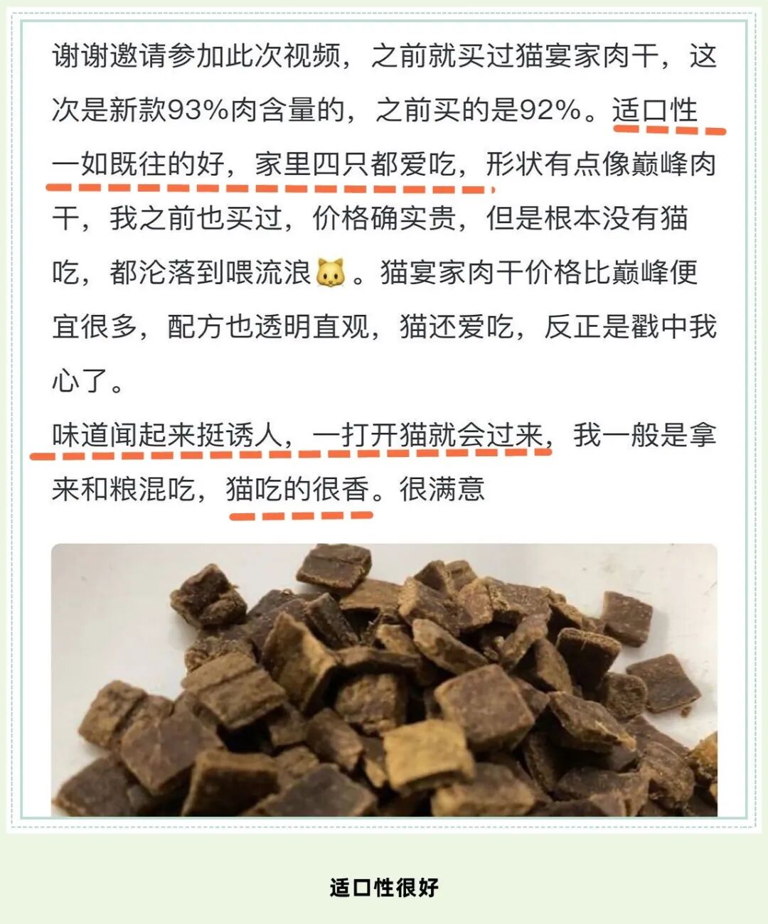 看着喵大人家的猫,吃的嘎嘣嘎嘣香,再一次证实了猫宴肉干猫粮的适口性确实不错,猫咪很是钟爱呢!