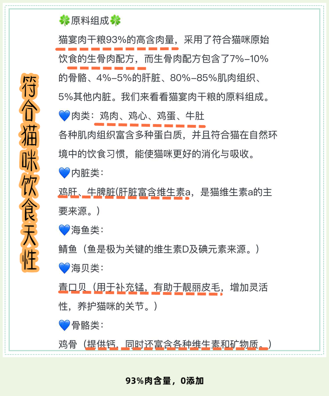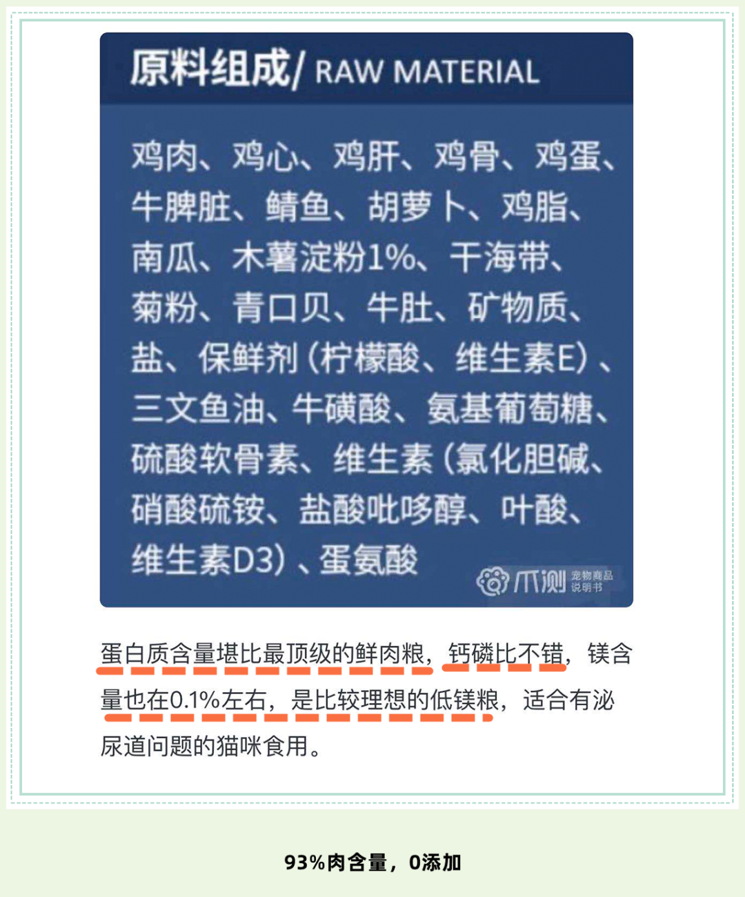 0%肉粉,0%诱食剂,0%防腐剂,0%谷物类植物。