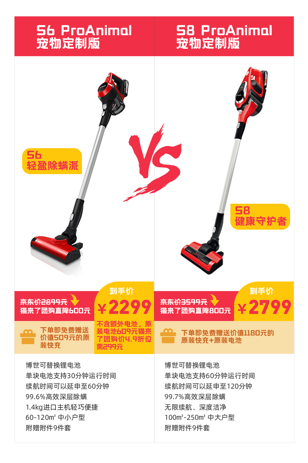 博世S6 ProAnimal宠物定制版京东价2899元,猫来了独家团购价直降600元仅售2299元!而且下单再送赠送价值509元的原装快充!