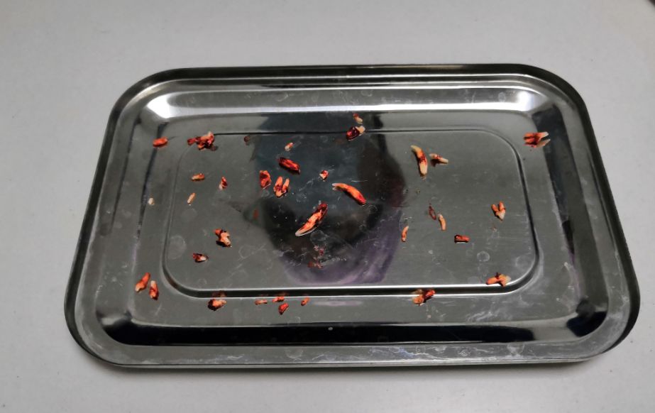 没有及时破坏牙菌斑,附着在牙齿表面的牙菌斑会被钙离子钙化变硬,形成牙结石,1mg牙结石中就有超过1000万细菌,猫咪出现严重口臭。