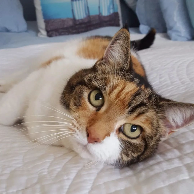 我的天啊,这换算成人类的年纪,也有108岁高寿了!给猫奶奶请安了!!这只三花猫名叫莉莉,铲屎官给它起的大名叫女王莉莉(Queen Lily),它出生于1999年。是铲屎官里斯11岁生日时,得到的生日礼物,当时莉莉才三个月大。
