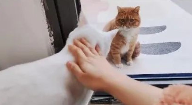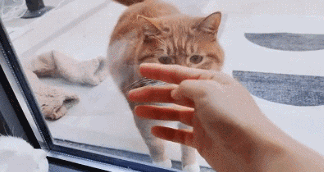时间长了,就连家里的原住民,都不忍再看屋外小伙伴的狼狈,友善地向小胖橘打招呼,邀请它进来玩。