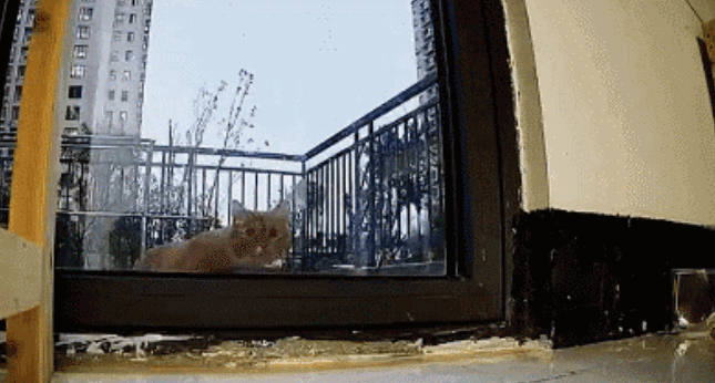 屋内,女孩儿在和家里猫咪们玩闹,欢声笑语,惬意安详;屋外,小胖橘眼巴巴地向屋内张望,圆圆的眼睛里闪烁的光,令人破防。