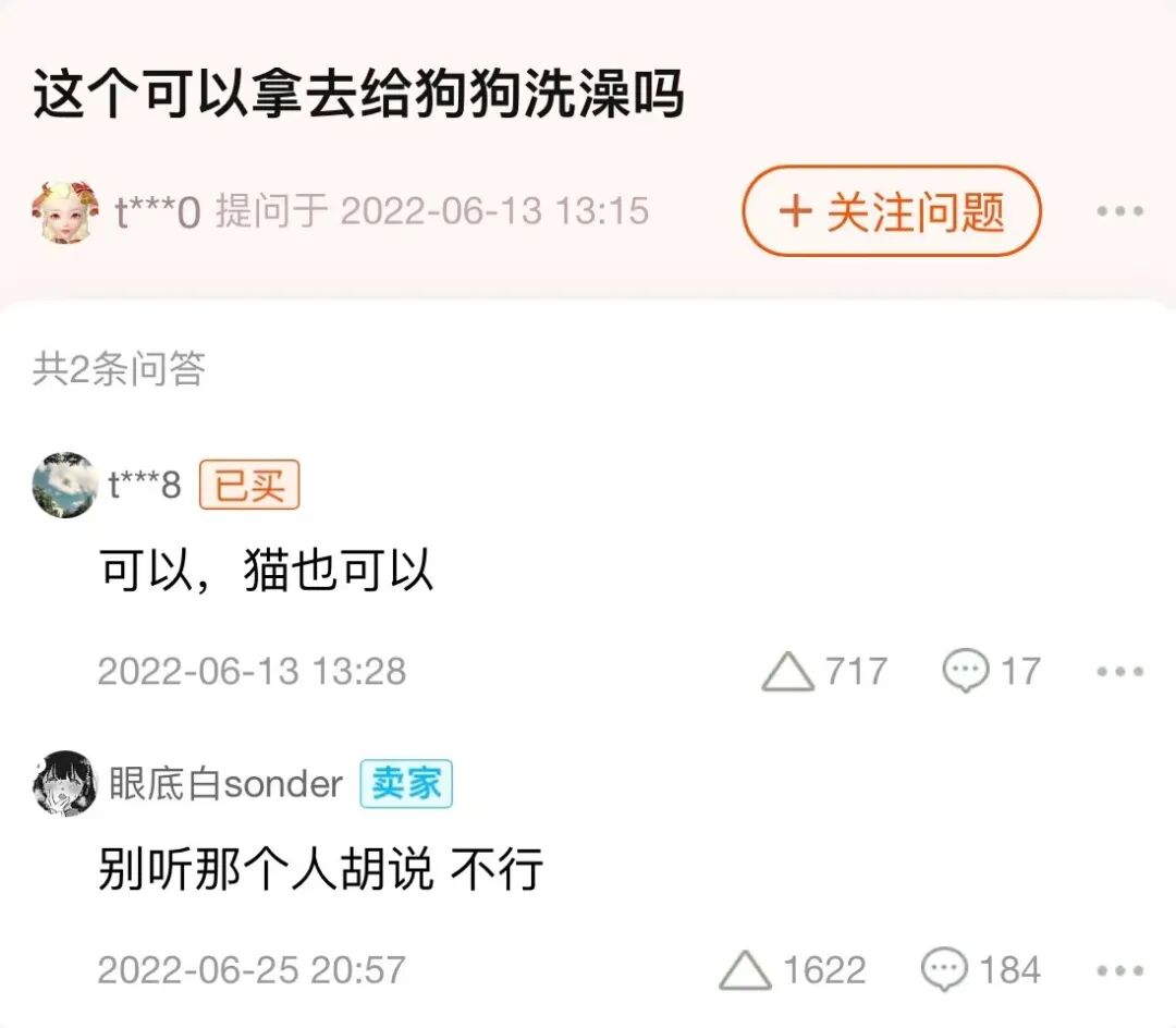 专门在详情页解释了为什么不能用来给动物洗澡。