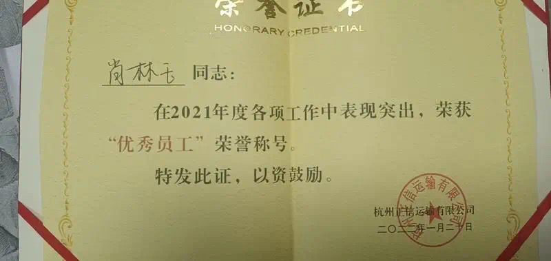 “公司里只要评选,每年的最佳员工都是我,08年交通局还给我颁发了一个安全驾驶的证书。”