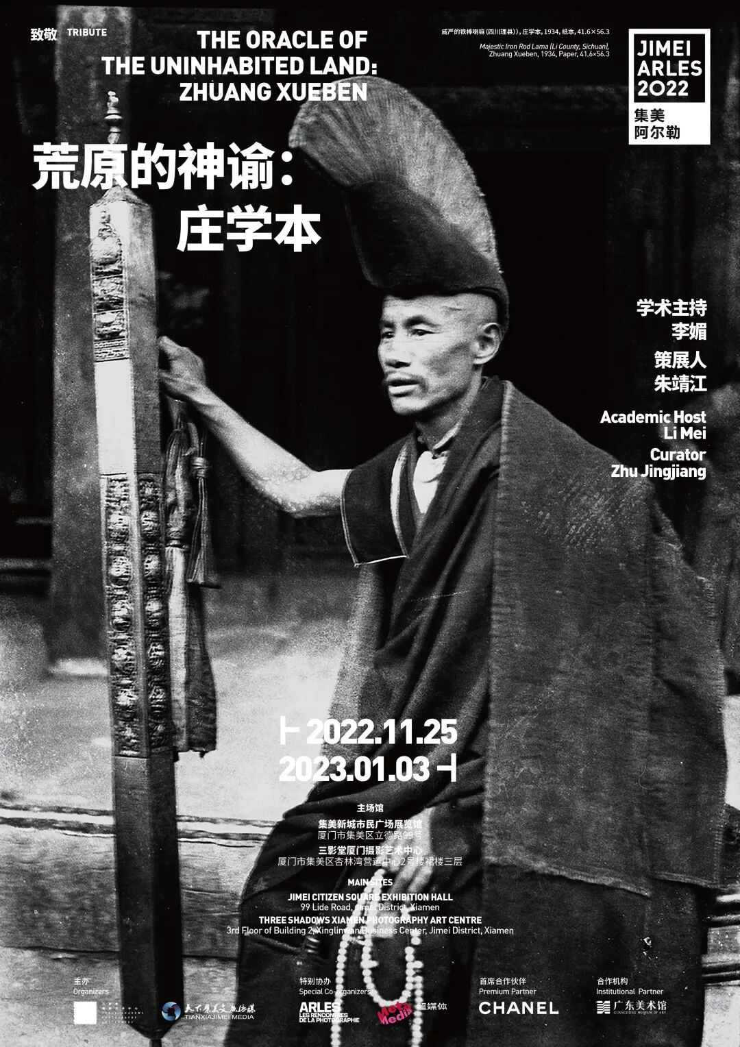 “致敬”单元自上年度起设立。2022集美·阿尔勒国际摄影季“致敬”单元展览《荒原中的神谕:庄学本》,由中央民族大学影视人类学研究中心主任、民族学与社会学学院教授朱靖江策划,纪念中国现代摄影史上的重要摄影师庄学本。