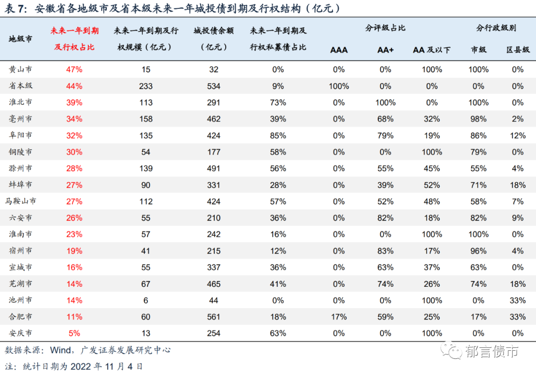 (三)2022年12月、2023年3月和4月是安徽省城投债到期高峰
