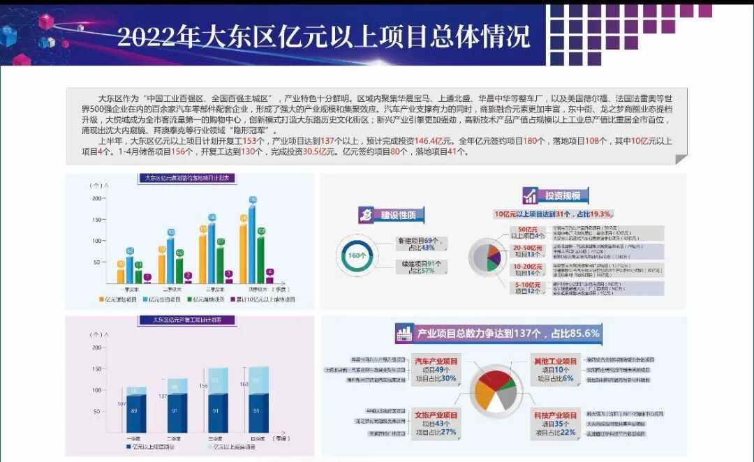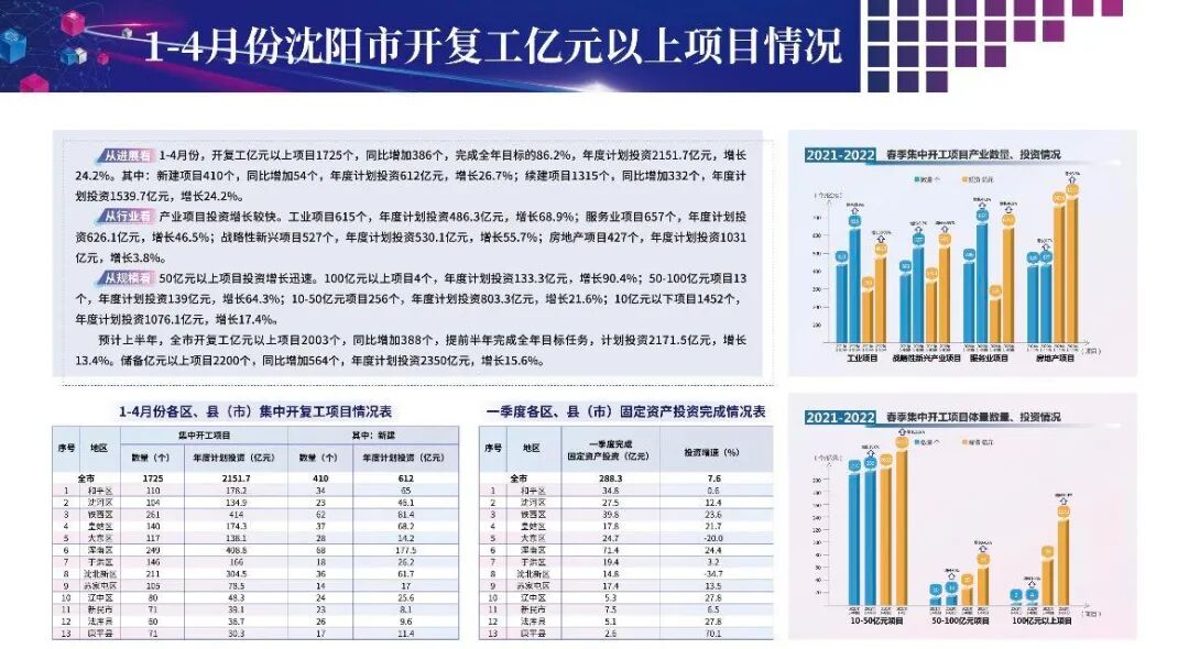 大体量项目增长迅速,华晨宝马新工厂等100亿元以上项目4个,年度计划投资133.3亿元,增长90.4%,红星美凯龙爱琴海等50-100亿元项目13个年度计划投资139亿元,增长64.3%。