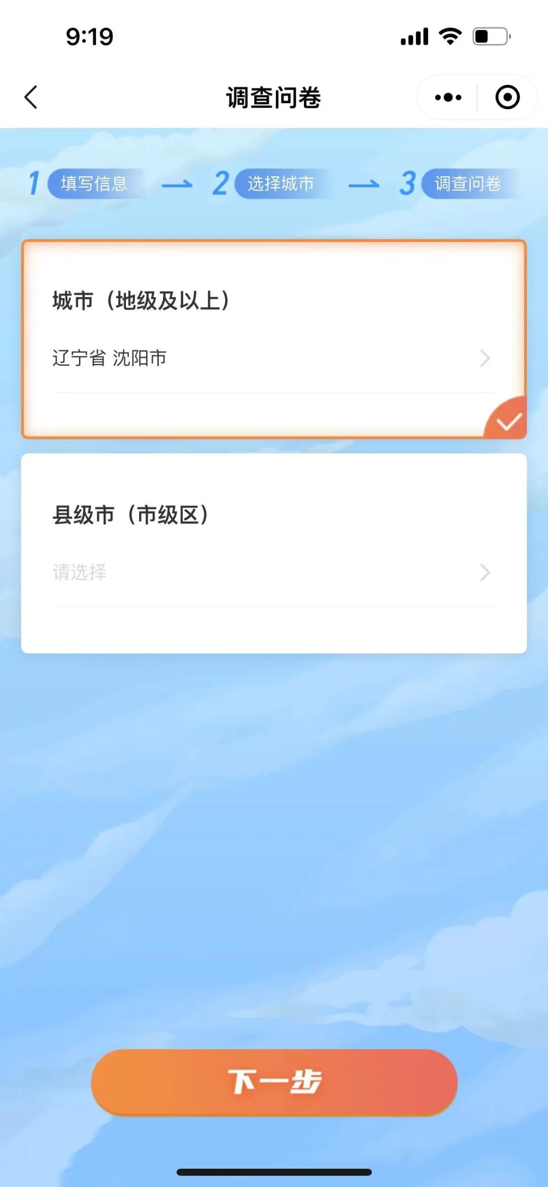 4.进入“选择城市”界面,城市(地级及以上)一栏请勾选辽宁省 沈阳市;5.填写调查问卷,完成题目后提交即可,记得给5星好评哦!![]()