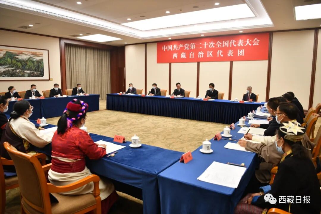 图为出席中国共产党第二十次全国代表大会的西藏代表团在驻地举行代表团全体会议。记者 旦增西旦 摄