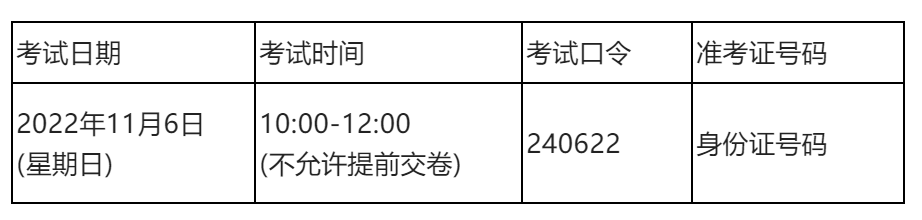 特别提醒:考试期间如发生考试设备或网络故障,故障解决后,考生可重新进入考试继续作答,之前的作答结果会实时保存;由于考试设备或网络故障导致考试时间的损失、或无法完成考试的,将不予补时或补考。