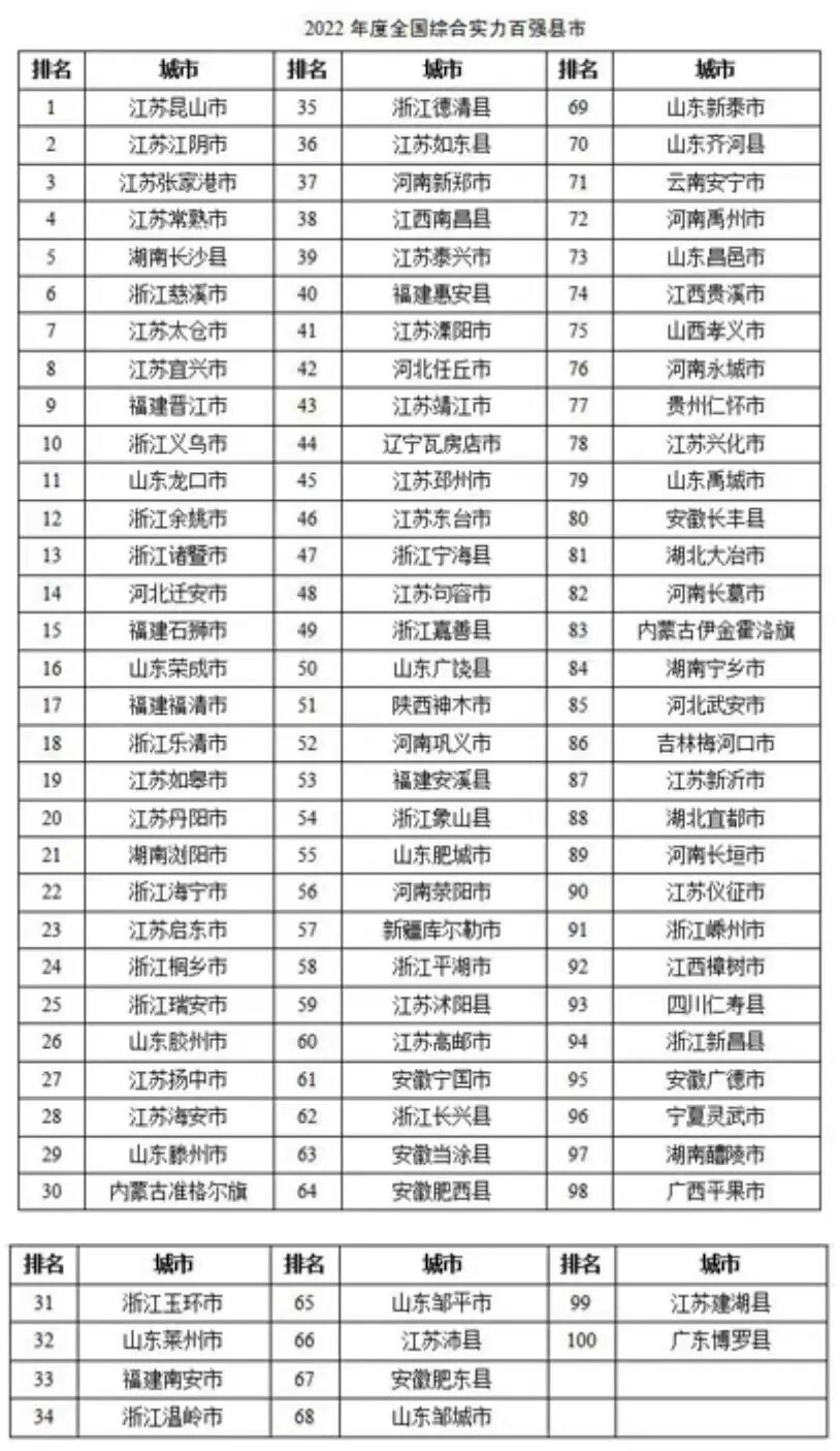 其中包括2022年度全国综合实力百强县市、2022年度全国综合实力百强区、2022年度全国绿色发展百强县市、2022年度全国投资潜力百强县市、2022年度全国投资潜力百强区、2022年度全国科技创新百强县市、2022年度全国新型城镇化质量百强县市、2022年度全国综合实力千强镇前100强等重量级榜单。