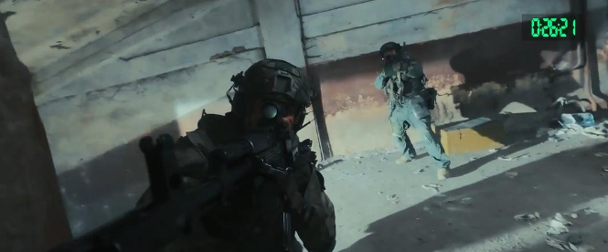 空气中弥漫着炮弹的烟雾,背景音是迫击炮的怒吼,士兵们在中间来回穿梭,不停地向目标进发。