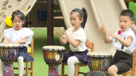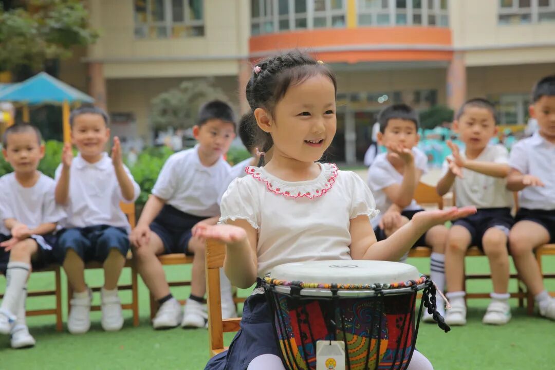 全园奏响欢乐的打击乐,师幼、亲子同台演奏,师生共同畅游在艺术的海洋。
