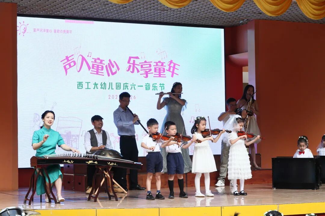 在国家大力倡导美育育人的背景下,西工大幼儿园精心策划开展了庆六一音乐节系列活动。通过班级音乐会节目展演、乐团体验、音乐游戏等丰富多元的活动,以歌为翼、以美育人、以美育德,萌发幼儿对美的感受和体验,让美浸润心灵,让歌声点亮童年。