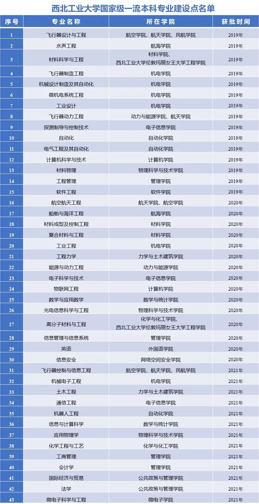 近年来,学校坚持立德树人,强化人才培养核心地位,全面落实《西北工业大学一流本科人才培养行动计划》,按照《西北工业大学“一流专业”建设总体方案》要求深入推进本科专业内涵建设,统筹规划一流本科专业建设点申报工作。教务处协同申报学院,精心组织多轮次一流本科专业建设点申报工作推进会与打磨会,聘请校内外专家对申报材料和建设方案进行悉心指导。全校54个专业入选一流本科专业建设“双万计划”,是学校深化教育教学改革、提升本科人才培养质量的重要成果。
