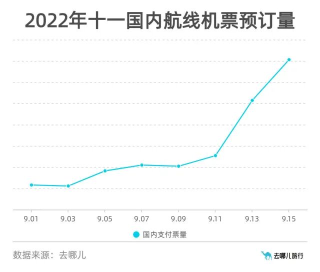 根据携程发布《2022年国庆预测报告》,从中秋节开始,国庆旅游进入稳序增长阶段,日均订单增长速度超过30%。从当前产品预订趋势来看,提前半月国庆旅游预订还是以长线游为主,周边本地预订也进入升温阶段。