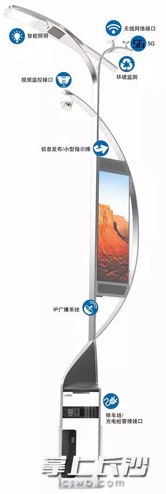 不知道大家有没有发现城市街头部分路灯设施已变了样,它们不再是以前的路灯样式,而是成为开启智慧城市的一把“钥匙”。“智慧路灯”,顾名思义就是更加智能化、科技化的路灯。在长沙路灯史上,路灯的功能就是照明。现在“智慧路灯”来了,它不仅照亮了城市,还增添了大量的智慧功能。那么“智慧路灯”具体有着怎样的优势呢?