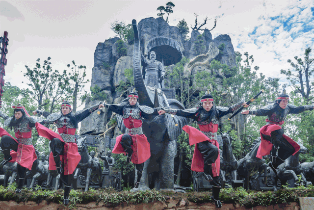 《武王招婿》《妲己魅惑》《编钟乐舞》《锅庄狂欢》等演艺秀好戏连台,更有互动游乐妙趣横生。
