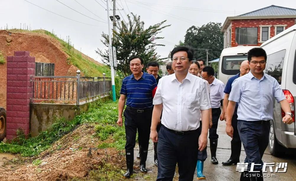 7月9日上午,省委常委、市委书记胡衡华深入望城区茶亭镇苏蓼垸检查防汛工作。