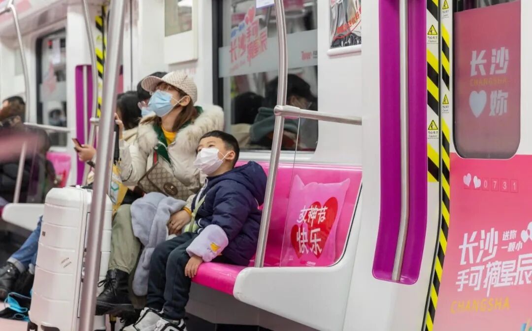 长沙地铁3、4、5号线都推出了粉红专列